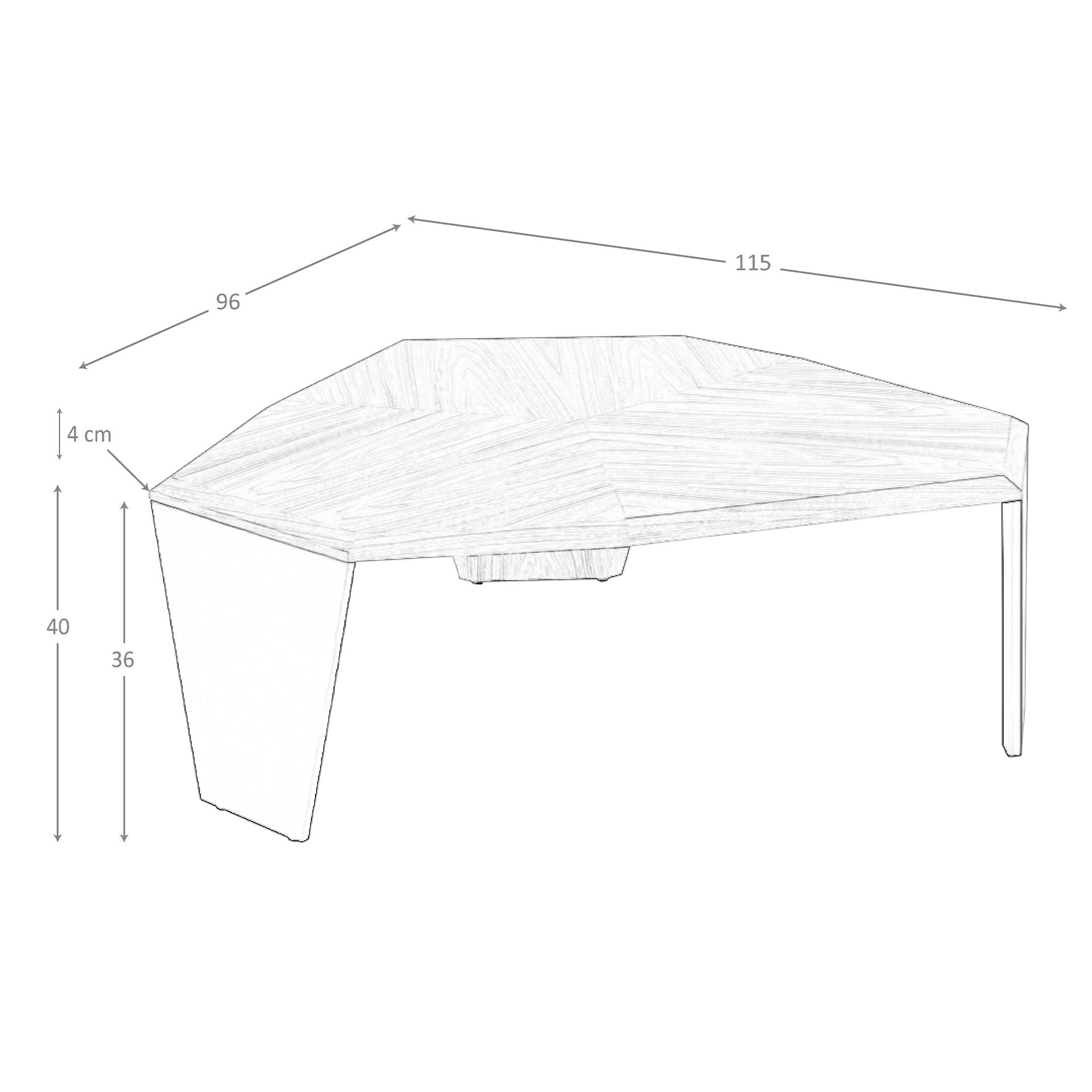 Asymmetrical walnut and black pvc coffee table