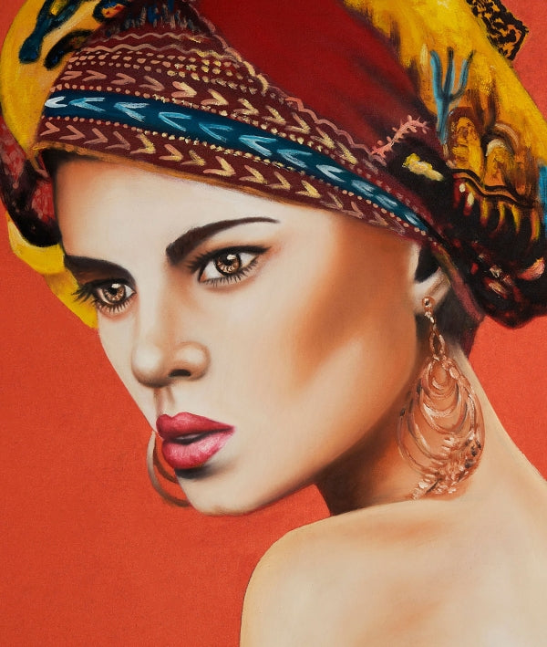 Exotic and original! The Yua canvas will captivate you with its colors and African style. It is made with a wooden structure that holds the hand-painted face of a woman. Yua will be the center of attention wherever you place it.