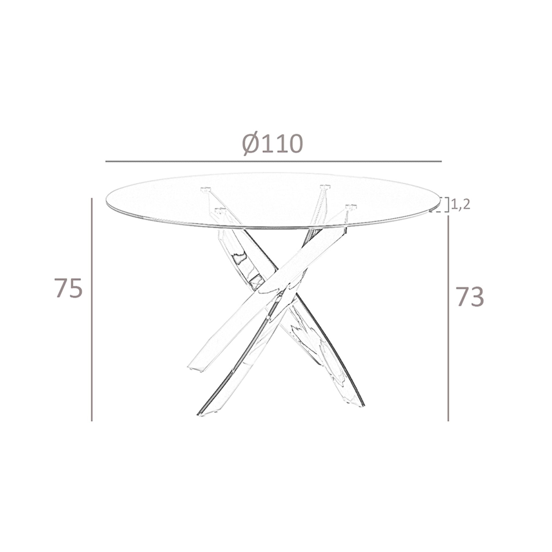 Round dining table in tempered glass and chromed steel