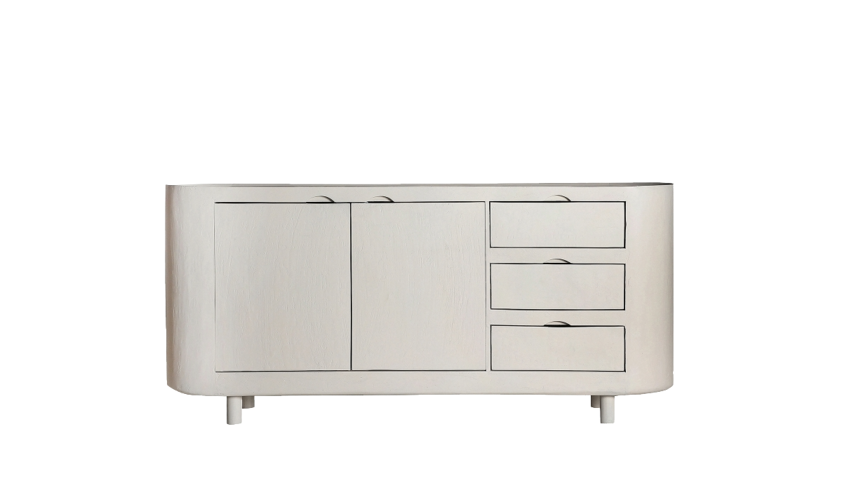 The HALSUA sideboard combines contemporary elegance and functionality in a soft, light-filled design. Crafted from mango wood with an off-white finish and MDF wood details, its clean, straight silhouette makes it the perfect choice for modern interiors seeking clarity and harmony. Ideal for living rooms or dining areas, HALSUA brings organization without compromising on style.