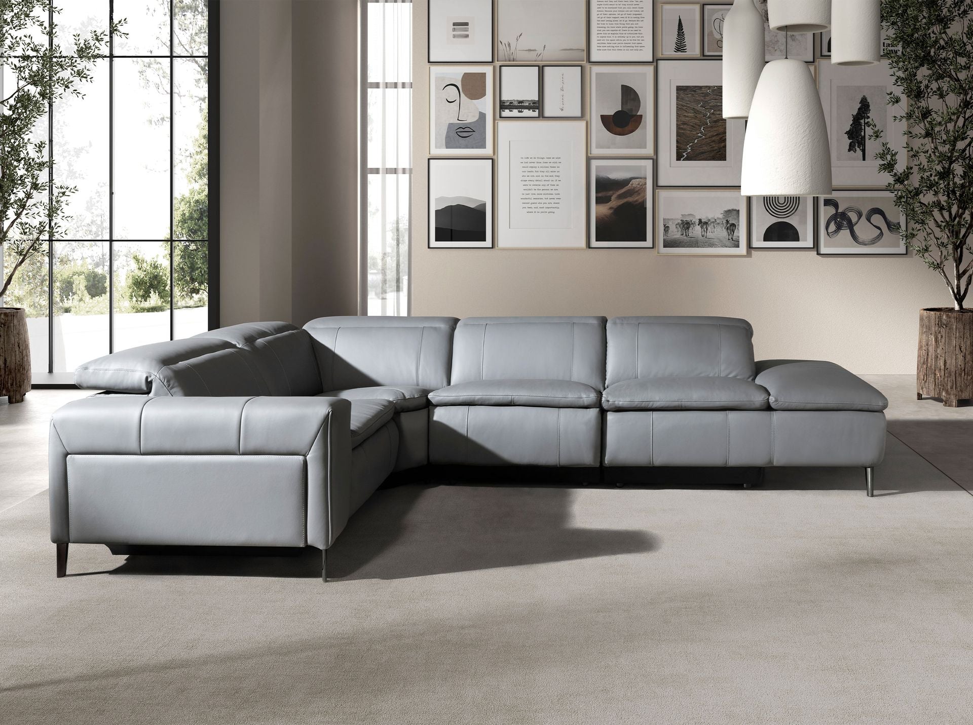 Relaxation sofa with right-hand chaise longue in gray leather